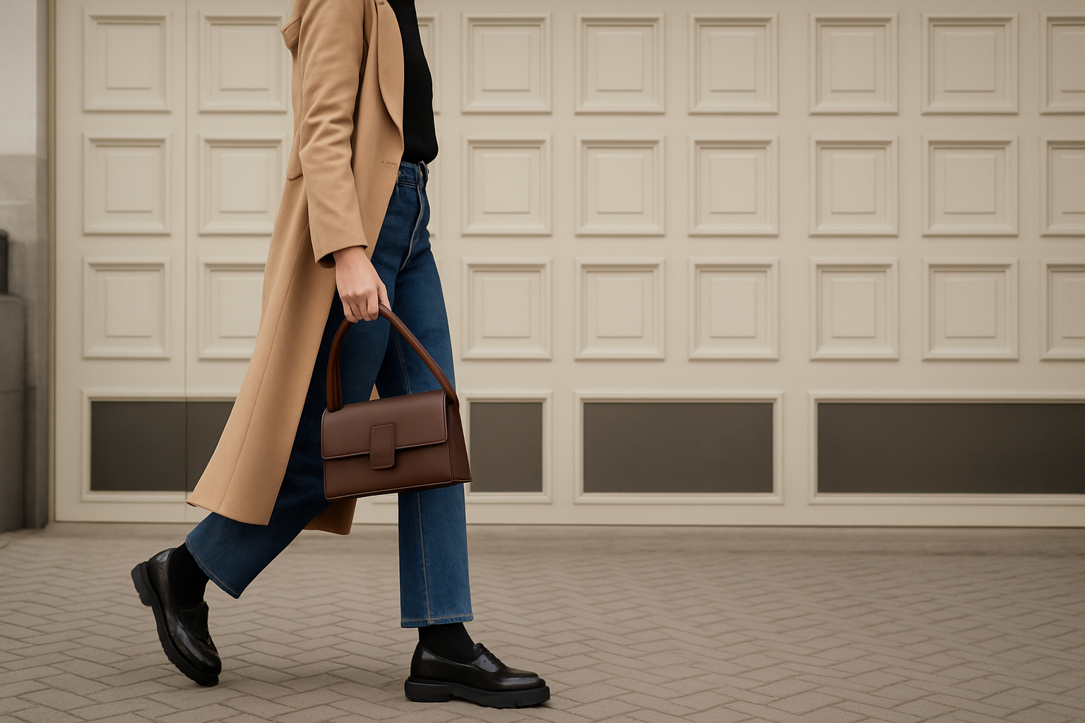 The balanced shape gives any outfit a polished look, whether worn with jeans or tailored trousers.